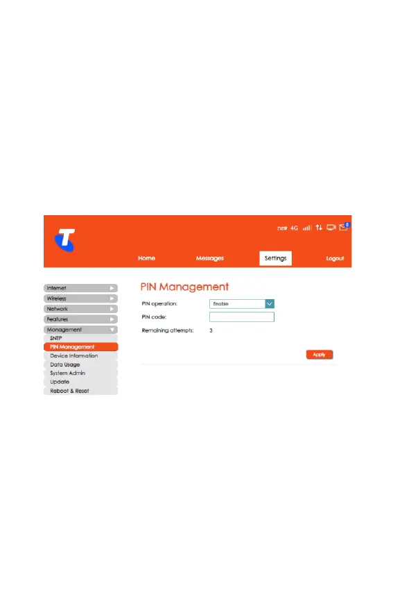 • Click Apply for the PIN to take effect.