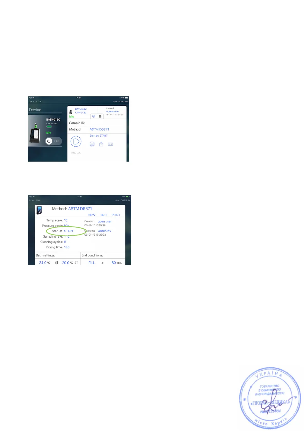 temperature set in the method (example: “Start at: 10ºC” will command the