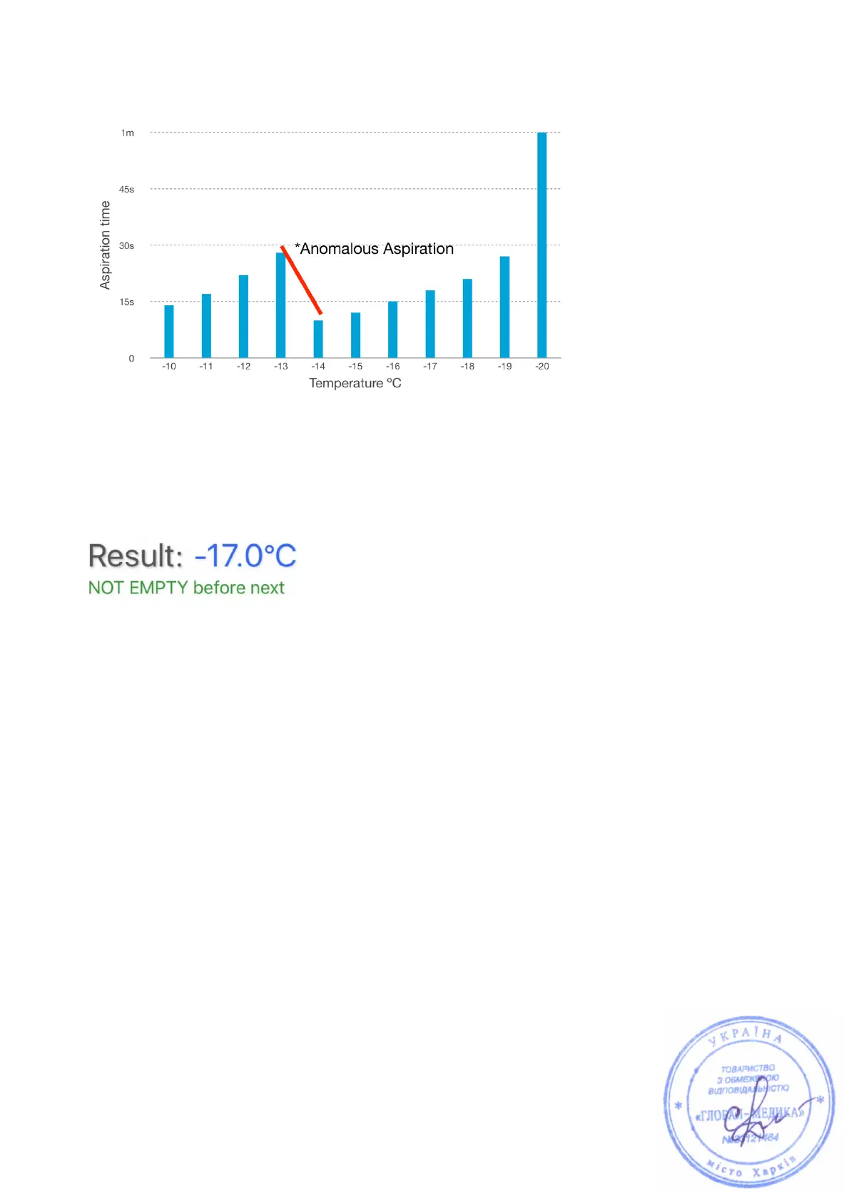 In this case -17 ºC should be reported as the CFPP result with the remark of