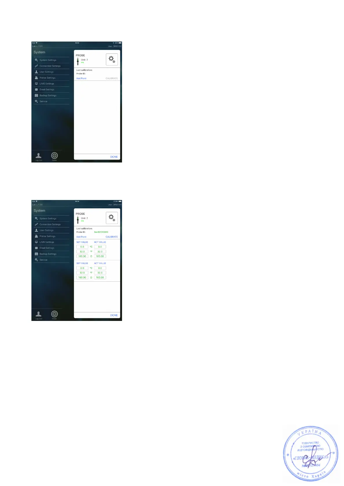 values on the prodived report should be entered afterwards in the calibration