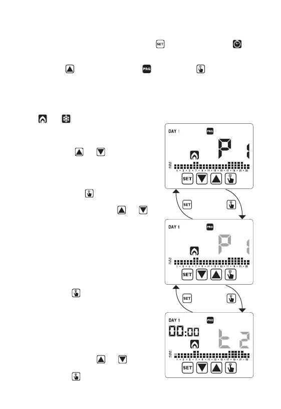 Der erste Wochentag blinkt (DAY 1), das laufende Programm (z.B. P1) des