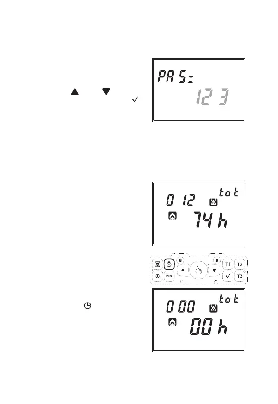 Es besteht die Möglichkeit, die Betriebsstunden des Geräts abzulesen (Relais in