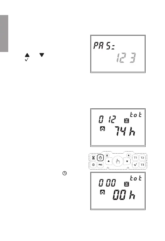 Se pueden visualizar las horas de funcionamiento del aparato (relé en posición