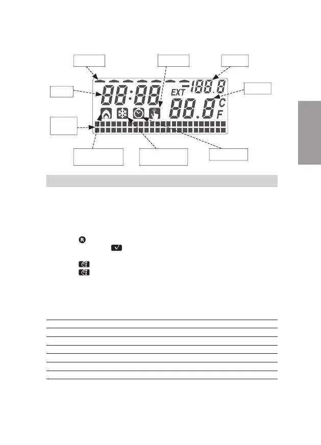 : tutti i segmenti fi ssi, appaiono ora e minuti, temperatura misurata ed