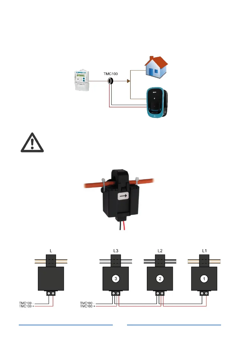 Open the TMC100 transformer (included) and couple it on the phase cable (L)