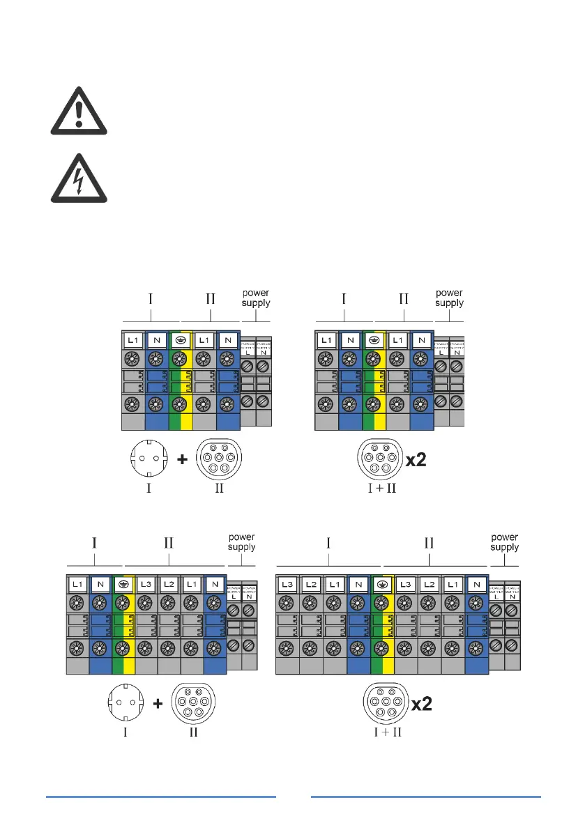 Når ladestationen er monteret på væg, udføres elektriske