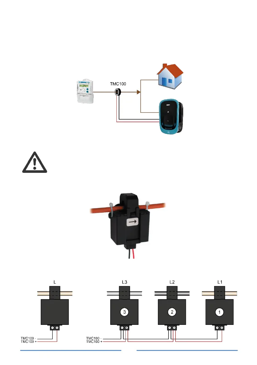 Åben TMC100 transformeren (inkluderet) og strips den på faselederen (L), så