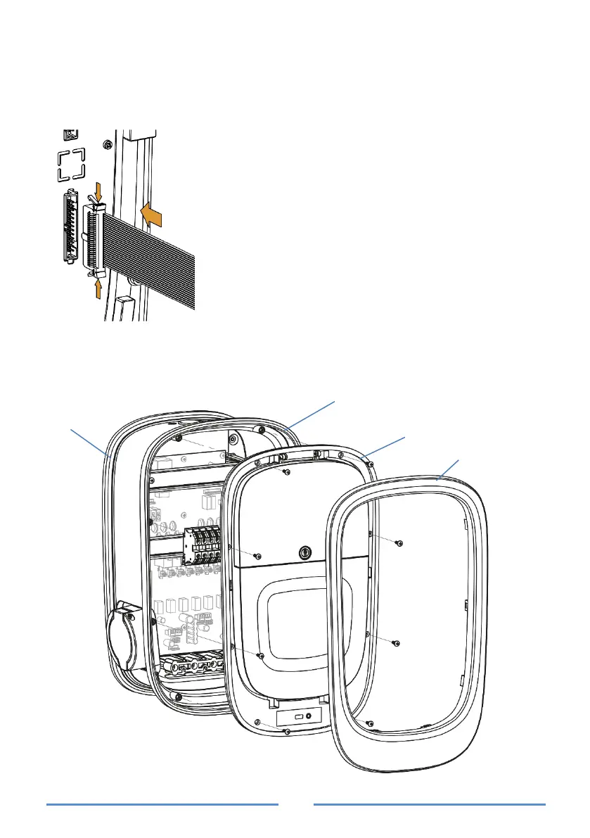 Monter frontpanelet på ladestationens base og fastgør den med skruerne.