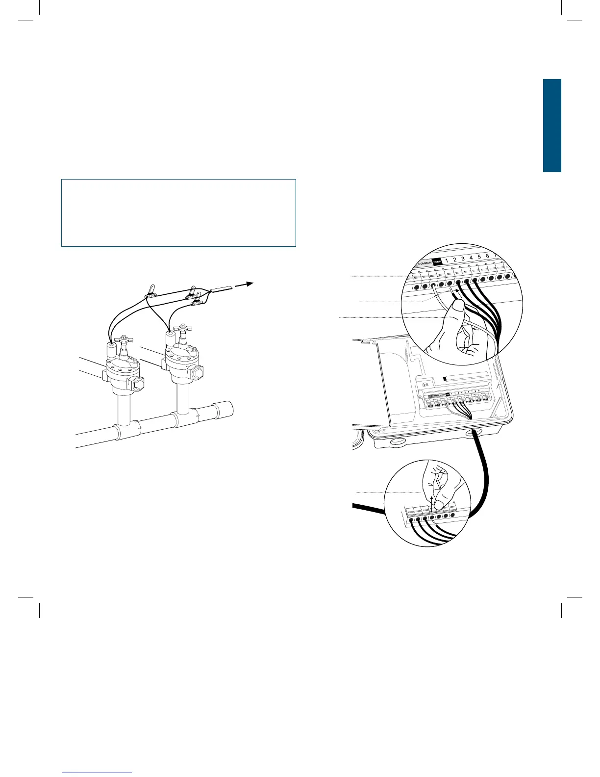 • Conecte el cable restante de cada válvula a otro cable
