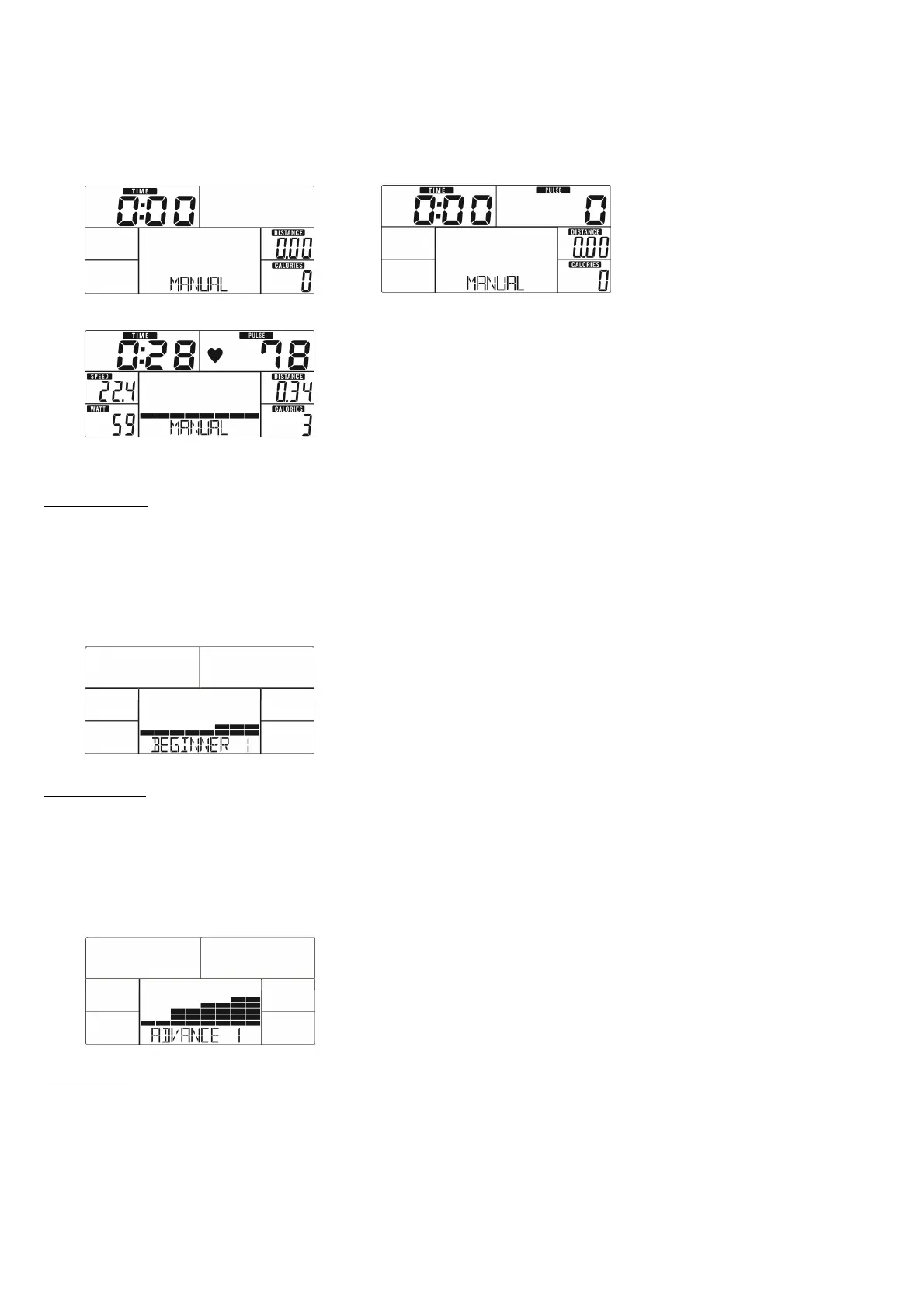 1. Use UP or DOWN (Encoder) to select workout program, choose Beginner mode and press MODE / ENTER to get into.