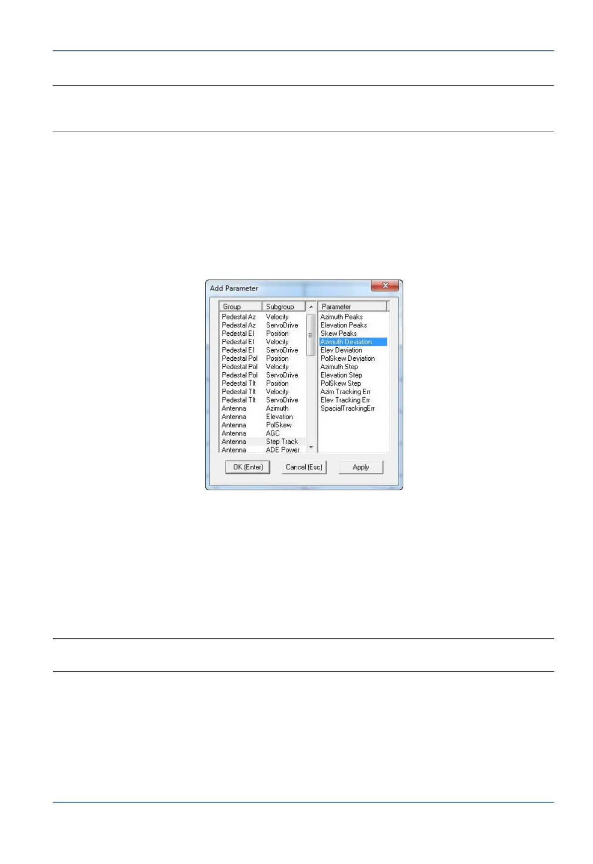 2. Select a Group/Subgroup in the left-hand pane (for example, Antenna/Step Track),