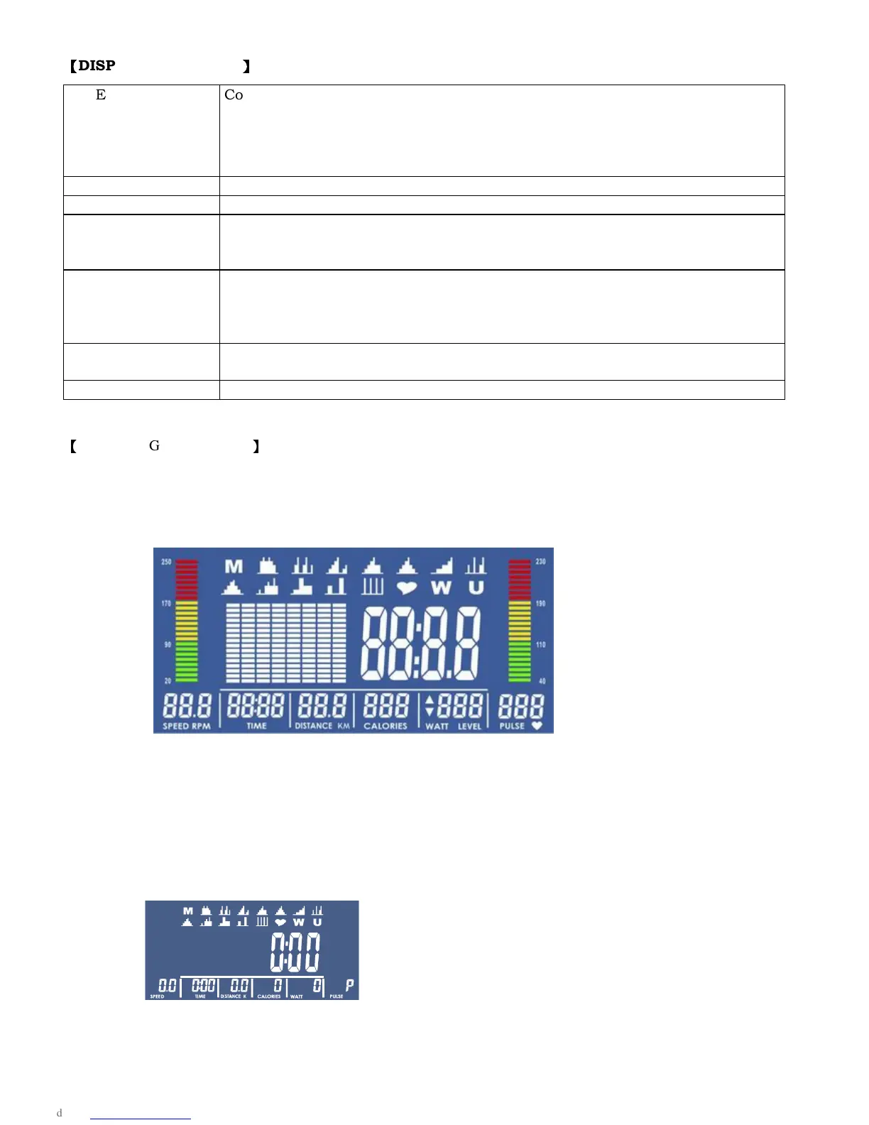 WATT Display current workout watts. Display range 0~999.