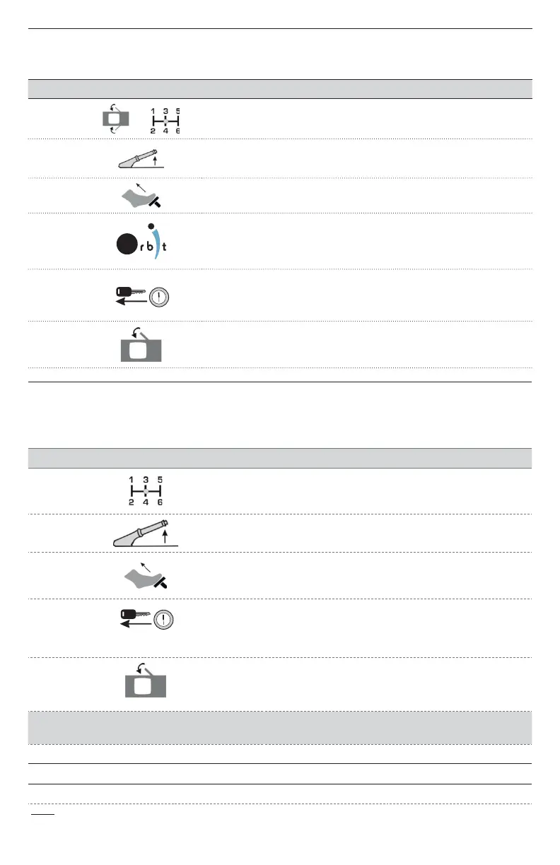 • Open any door(s) • Open the hood • Disengage of the parking brake