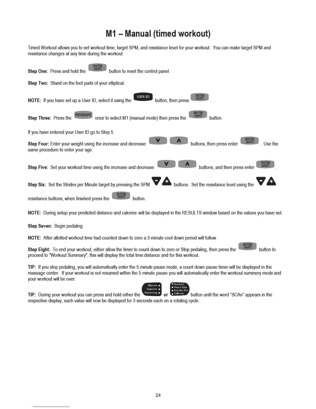 Orbit Silver XT - Manual Timed Workout (M1); Manual Timed Workout Setup