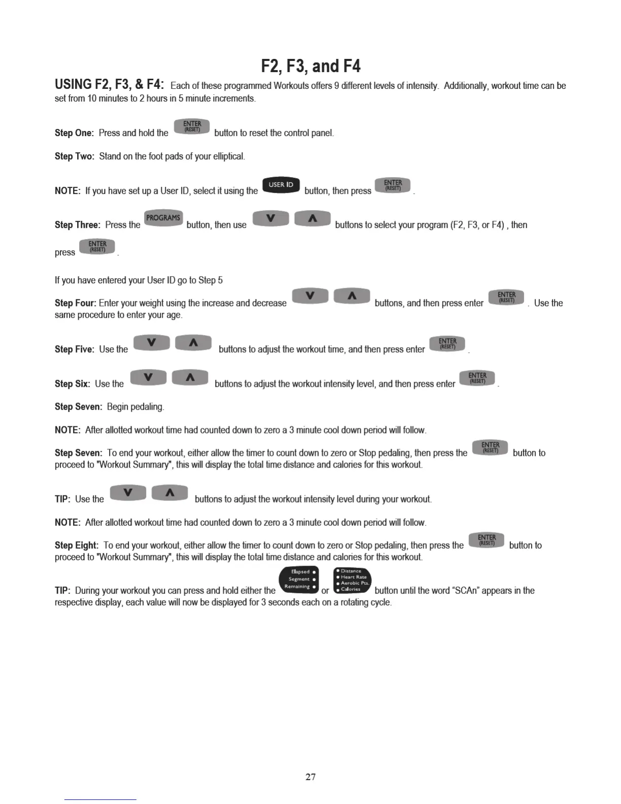 Orbit Silver XT - F2, F3, and F4 Intensity Workouts; Intensity Workouts F2-F4 Setup