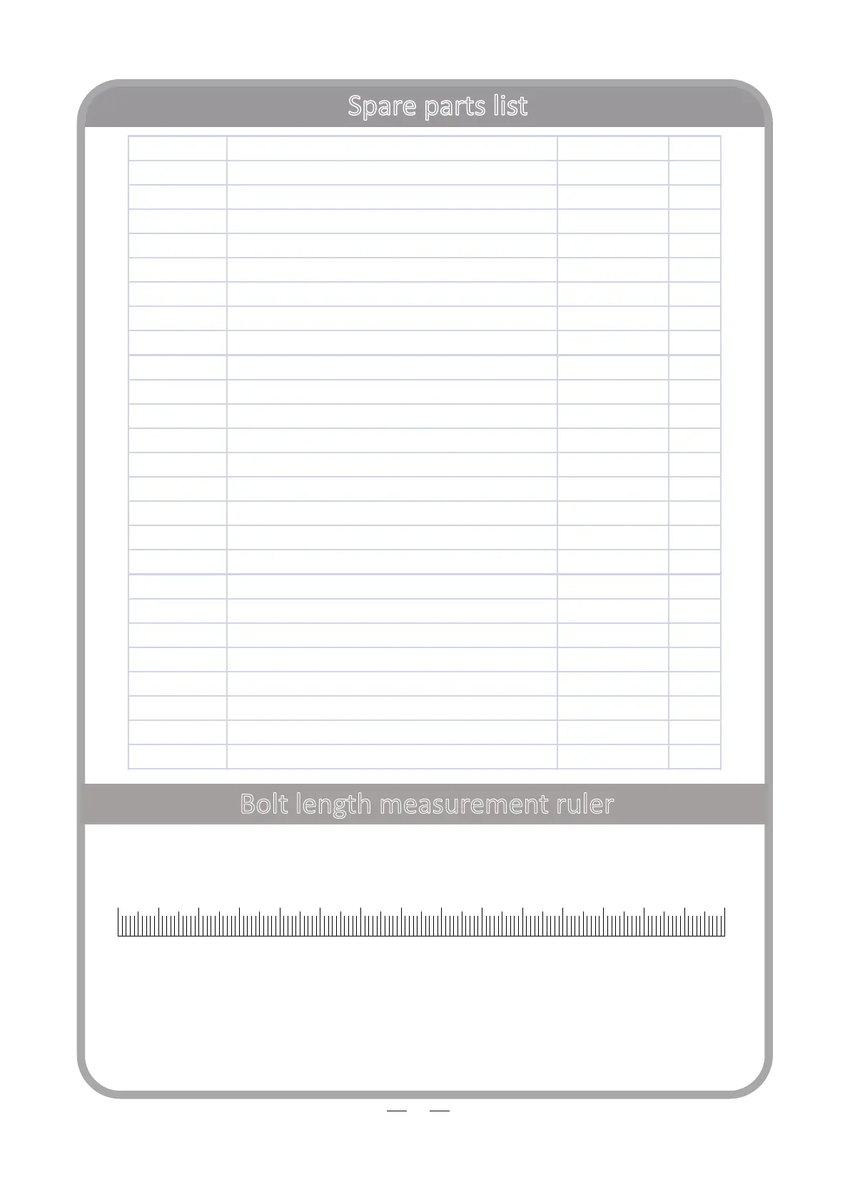 Spare parts list