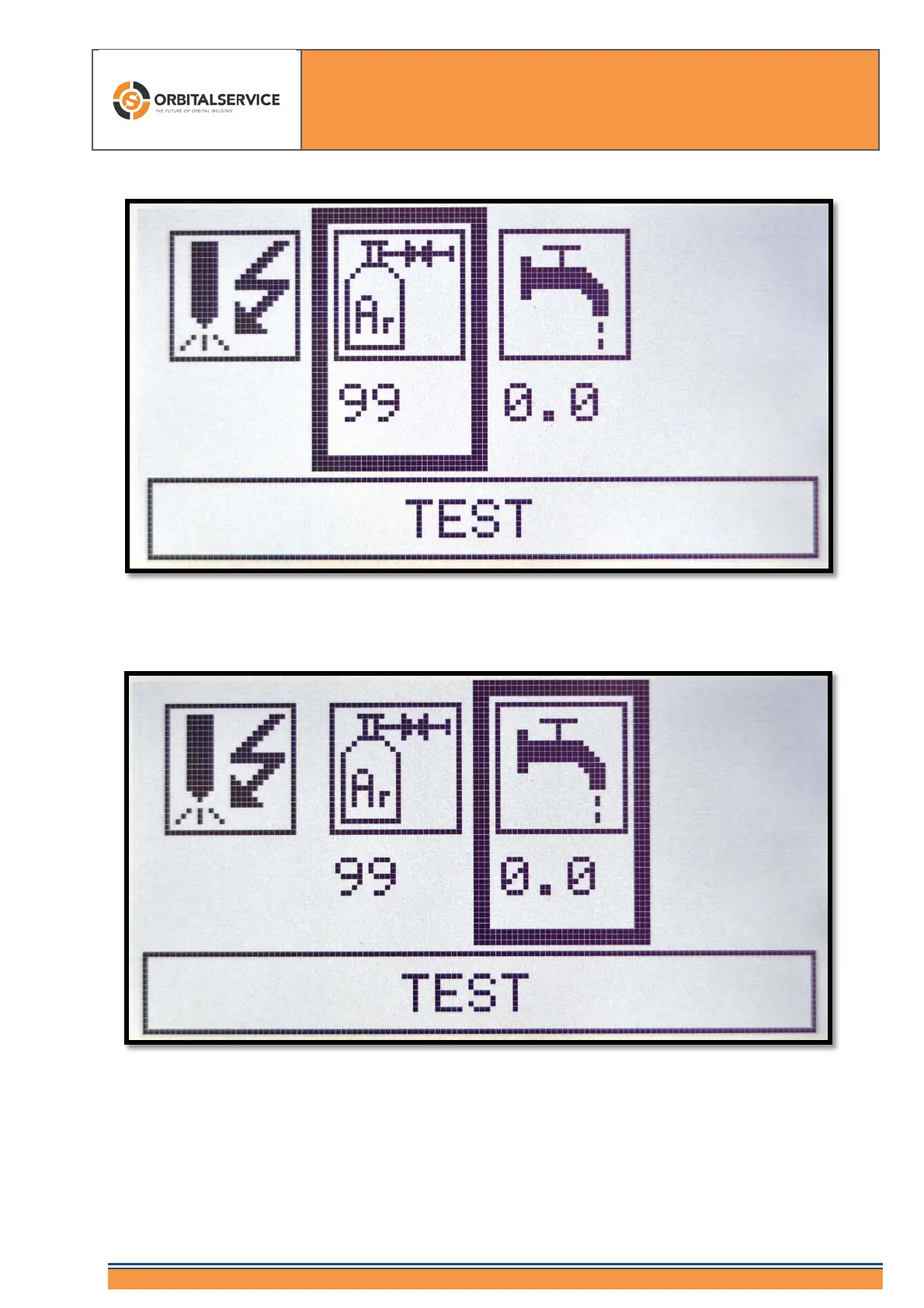 Gas test: If this field is highlighted in black, the solenoid valve is activated and a gas test with
