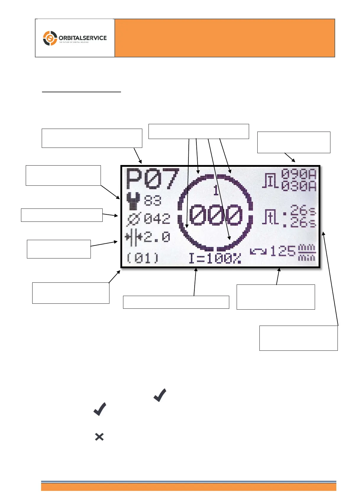 This screen is the "main screen". Only from this screen you can start the welding process by