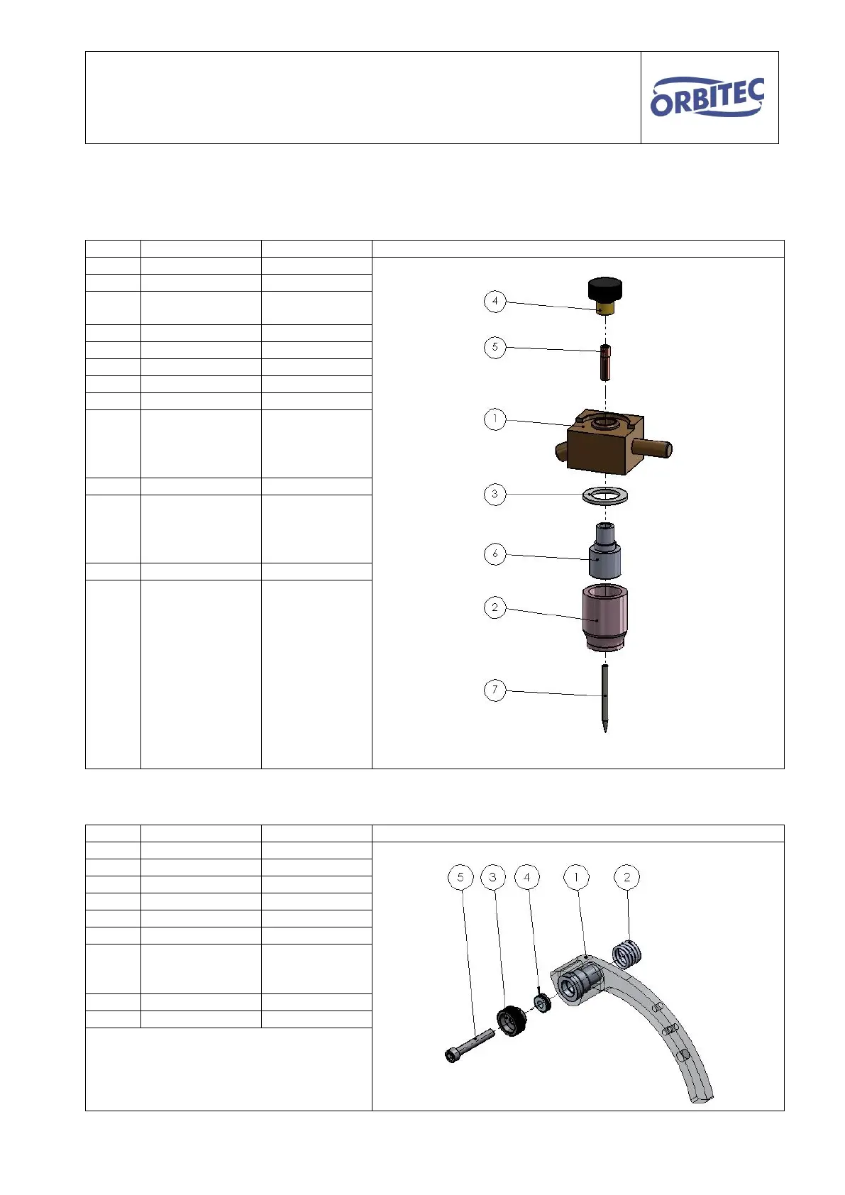 ORBITEC OSW Series - Spare Parts and Consumables; Torch Parts List; Torch Arm Parts List