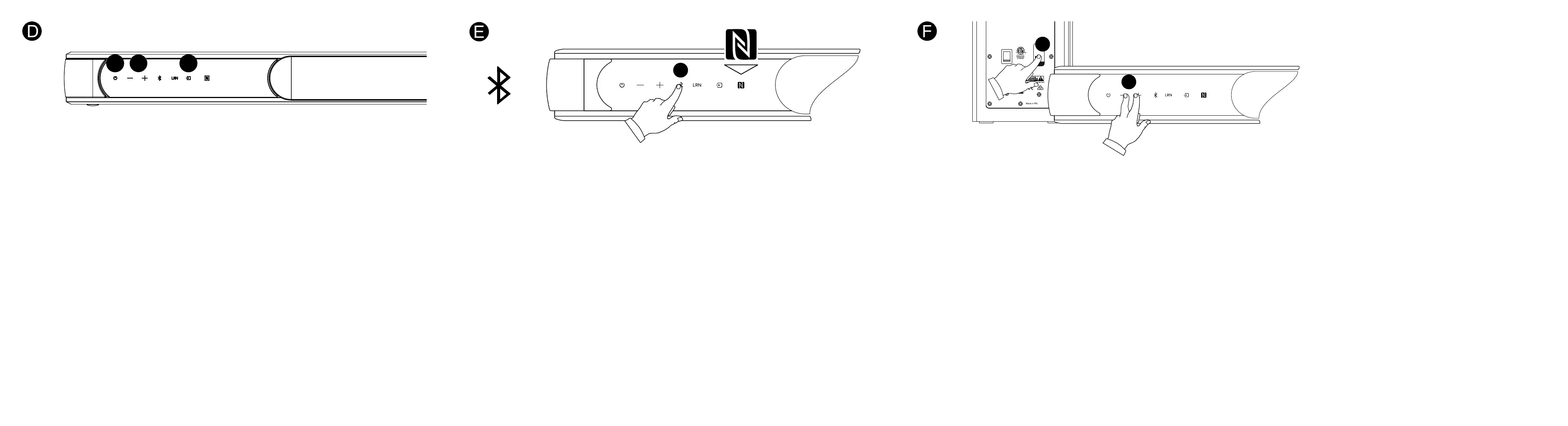 To pair a Bluetooth device, press and hold the Bluetooth button 1 for