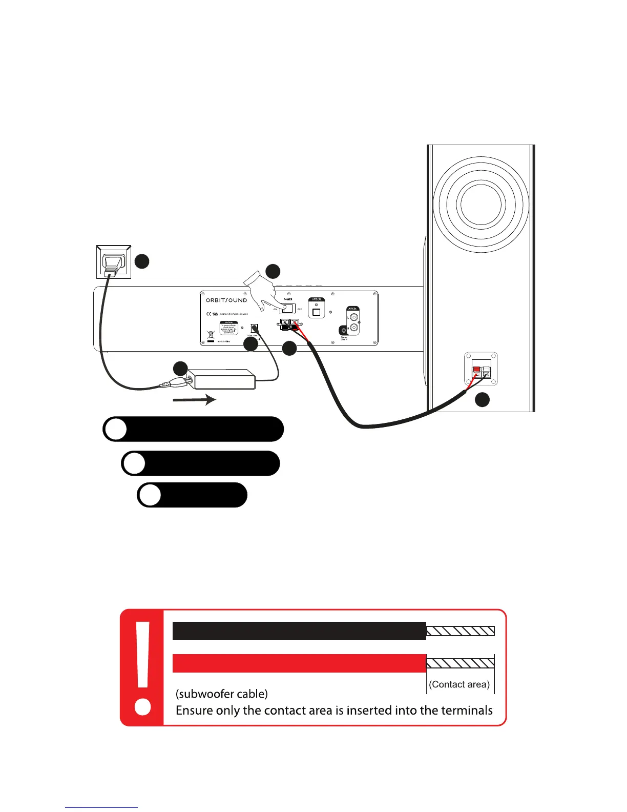 1. Connect the subwoofer as shown (see below picture)