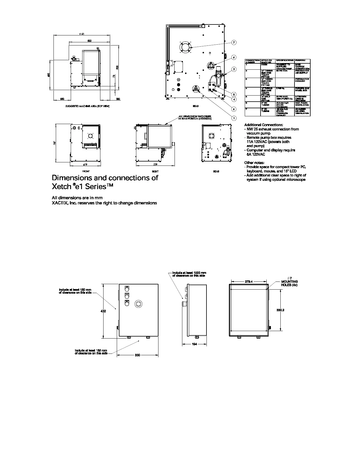 Figure 2. Machine dimensions and locations of utility connections. Note, some systems