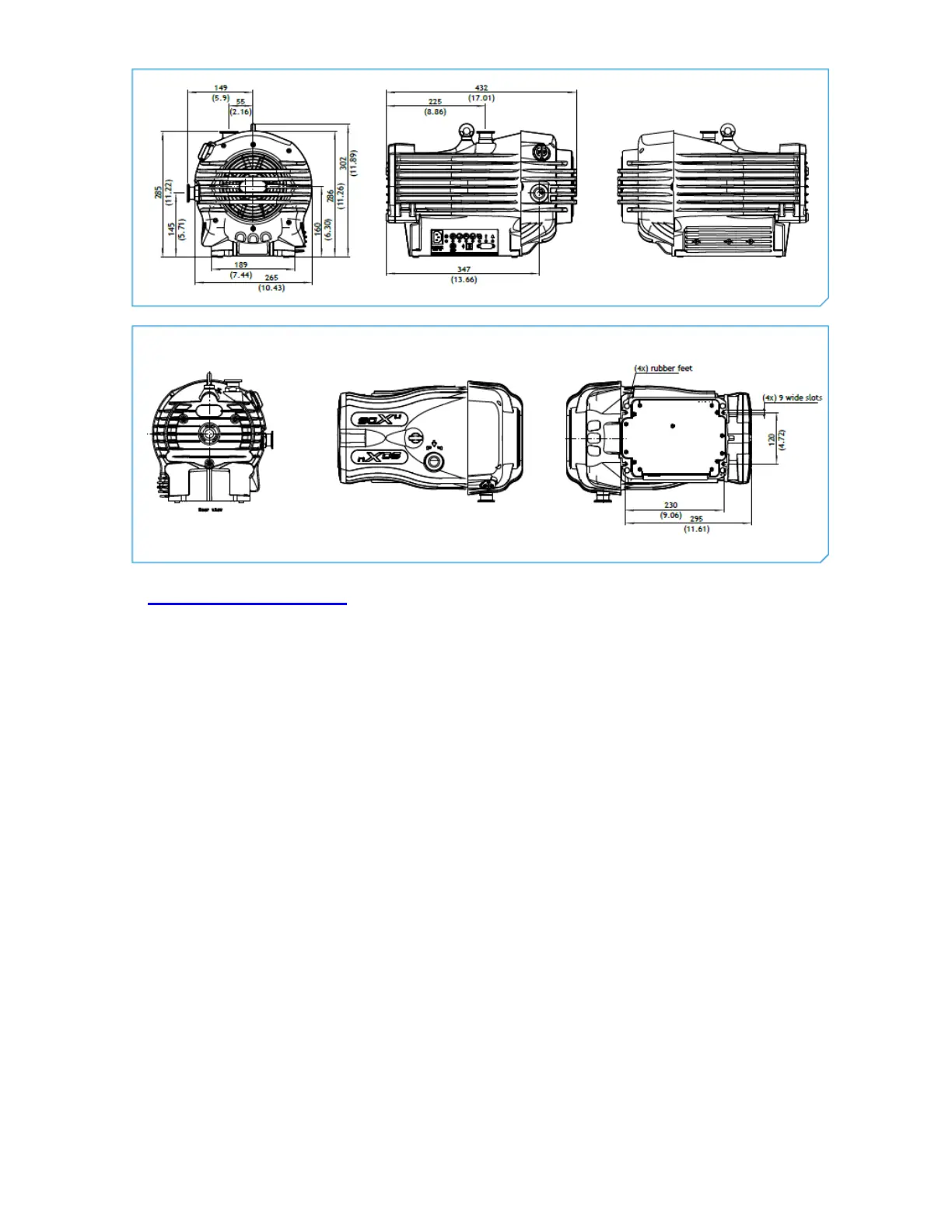 Figure 4. nXDS6i pump dimensions in mm. Graphic taken from Edwards nXDS6i datasheet. See