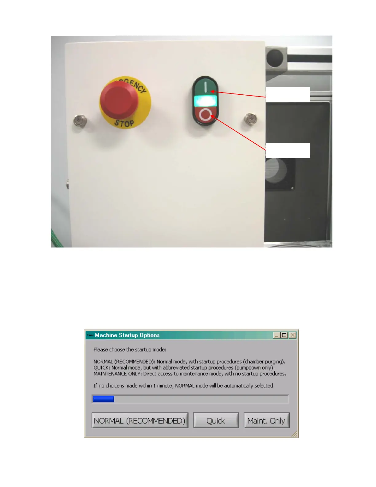 Press the ON button to start up the e1 Series and the vacuum pump.