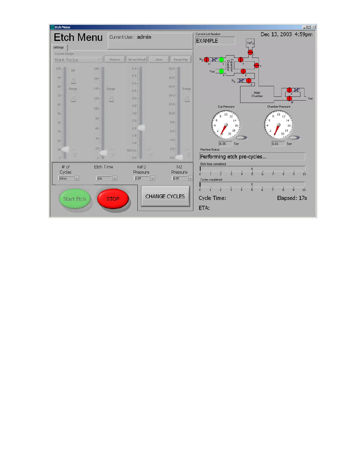this is used to end the etch prematurely; “CHANGE CYCLES” button which at any time during an etch
