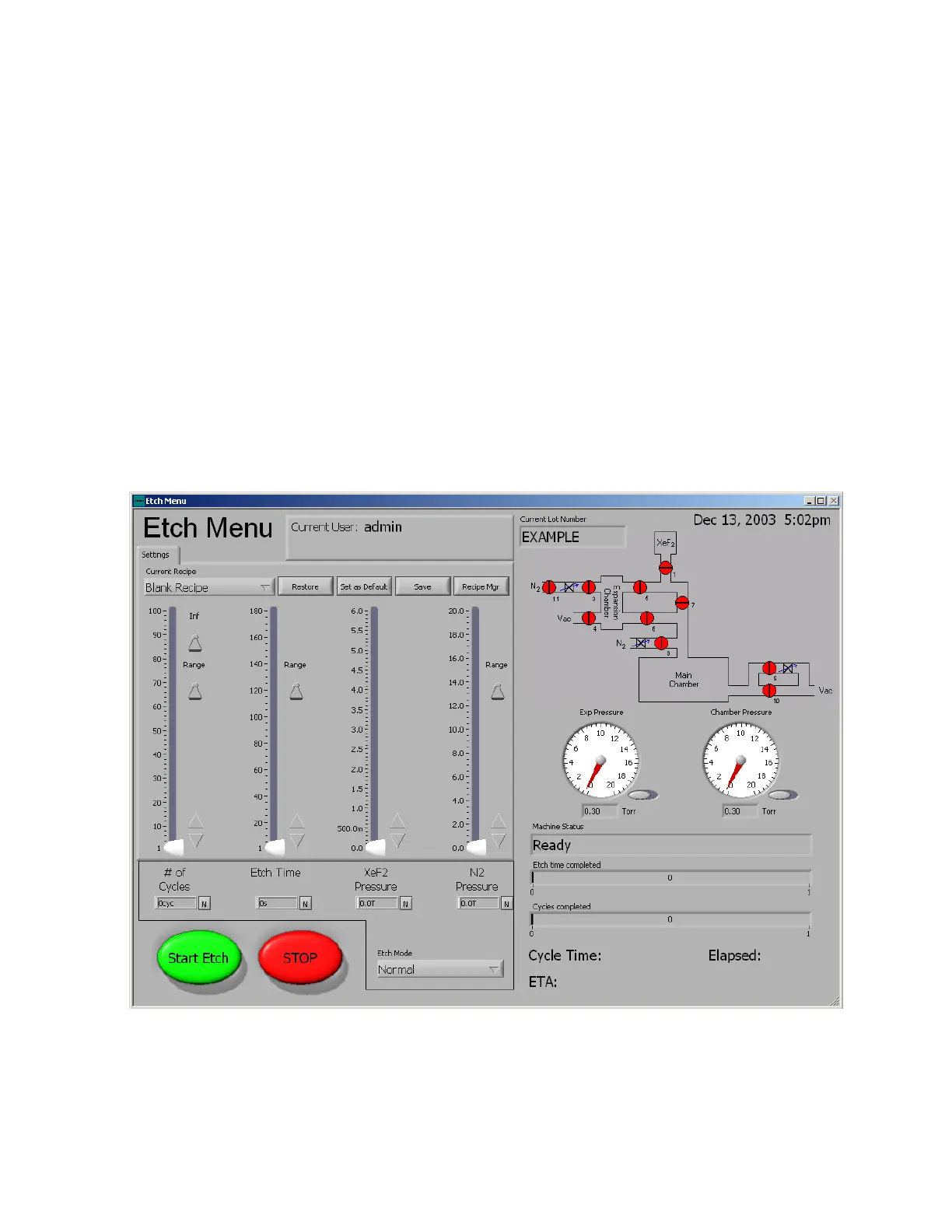 Normal mode is the standard etching mode and its screen is shown below:
