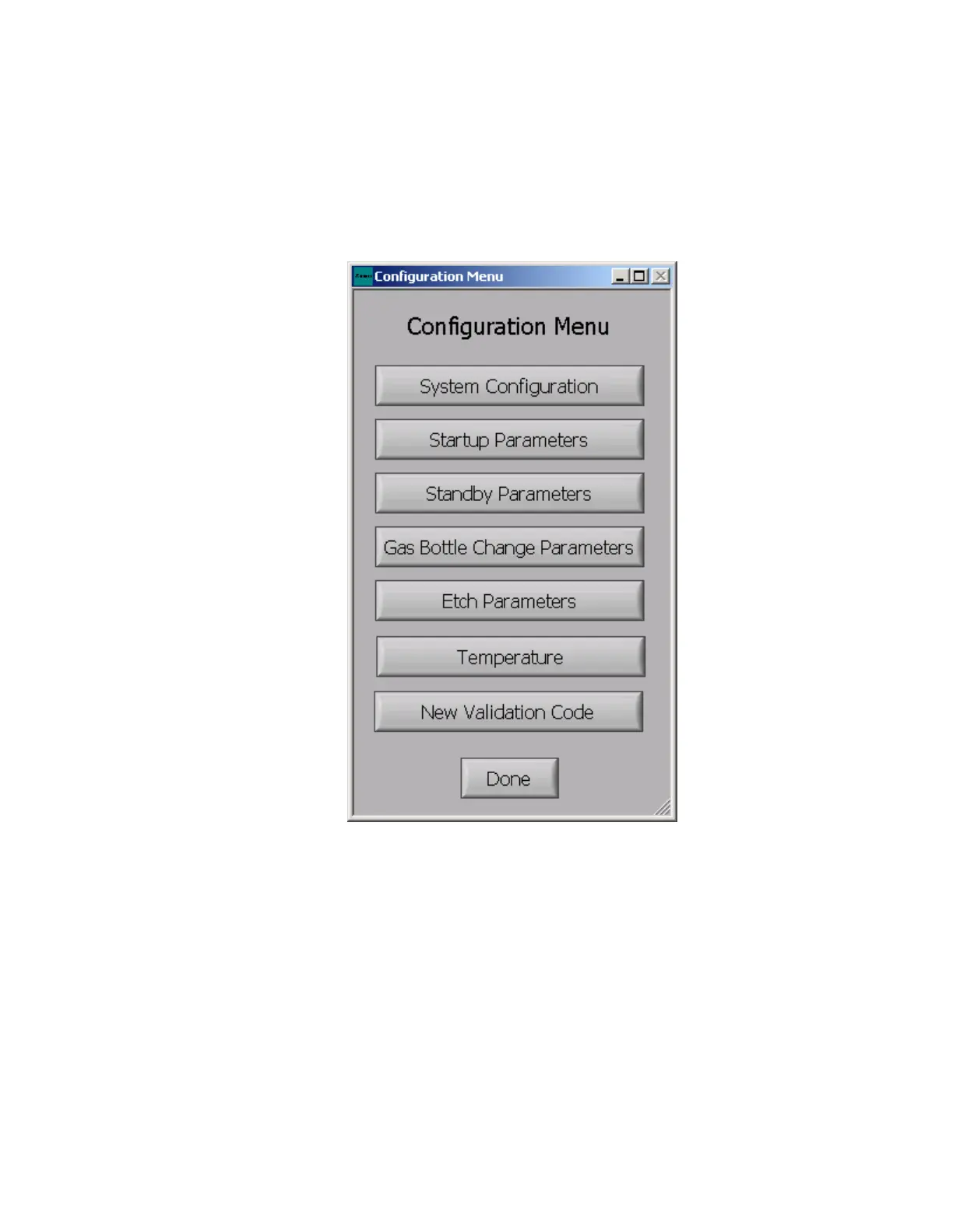 parameters, startup parameters, standby parameters, maintenance parameters, etch parameters, and