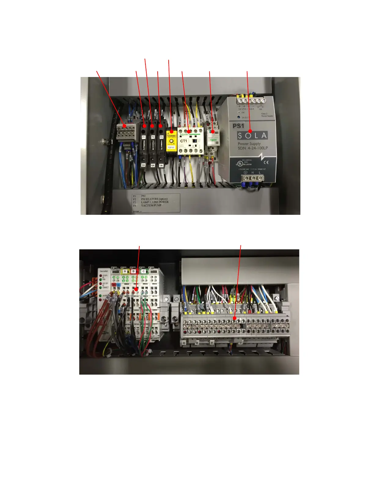 The panel layouts of the electrical power box (remote unit) and internal electrical units are shown in