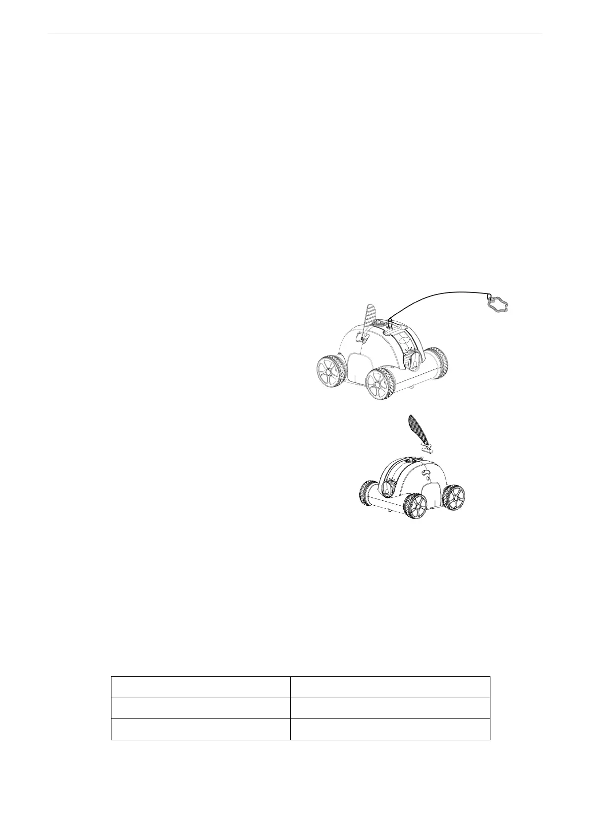 f. Avant d'enlever le robot de la piscine, il est préférable de le suspendre 10 - 15 secondes