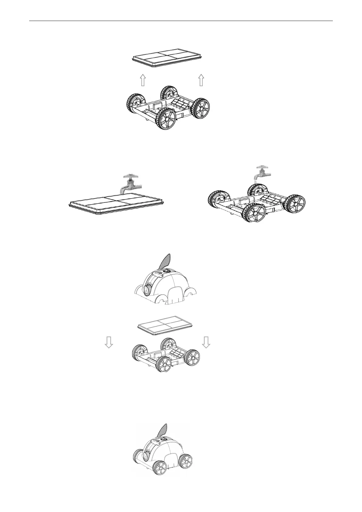 Enjuague el filtro y la bandeja por separado hasta que el agua esté limpia.