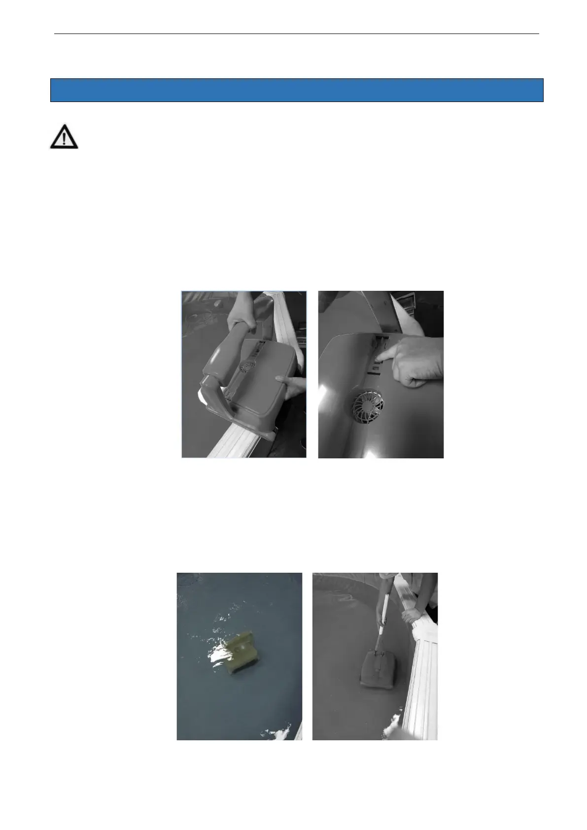 Lyft ner bottensugen med undersidan mot bassängväggen, för att undvika eventuella repor på