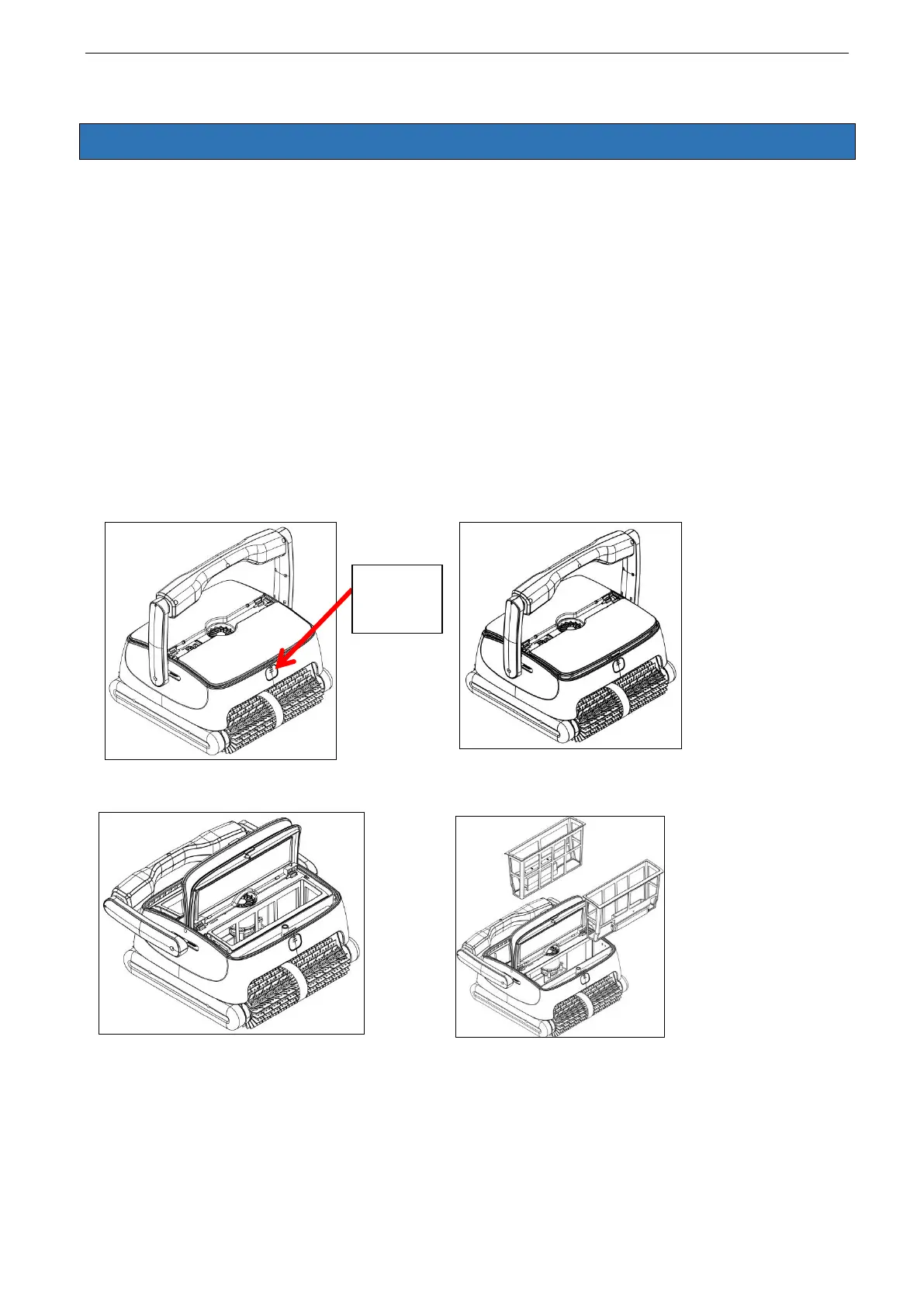 För att ta ut filterpatronerna: Tryck på knapparna (bild 4–1), luckorna fälls upp automatiskt (bild 4–