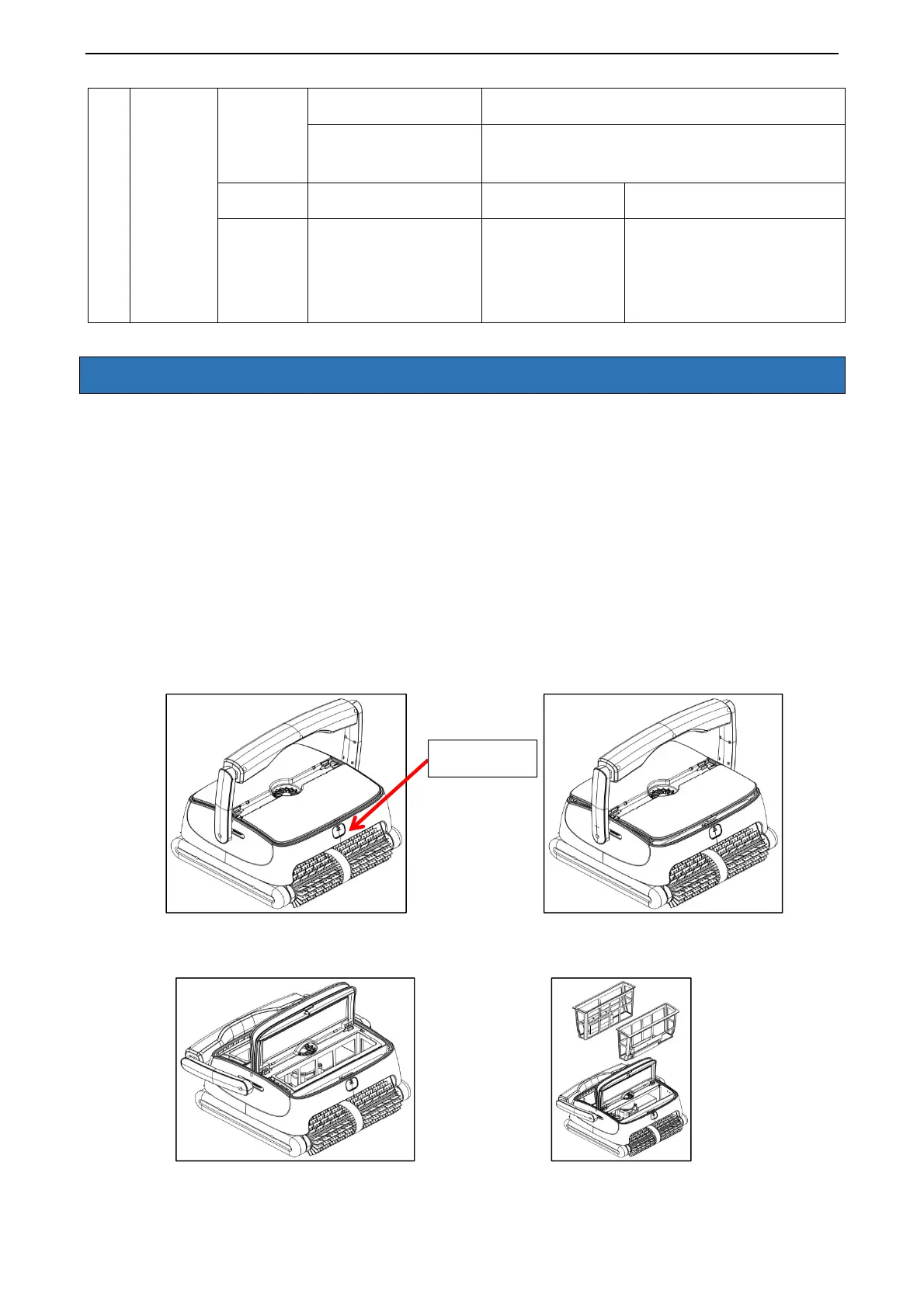 Put the cleaner on the ground, press the buttons ( 4-1), the covers unlock (4-2), open the covers (