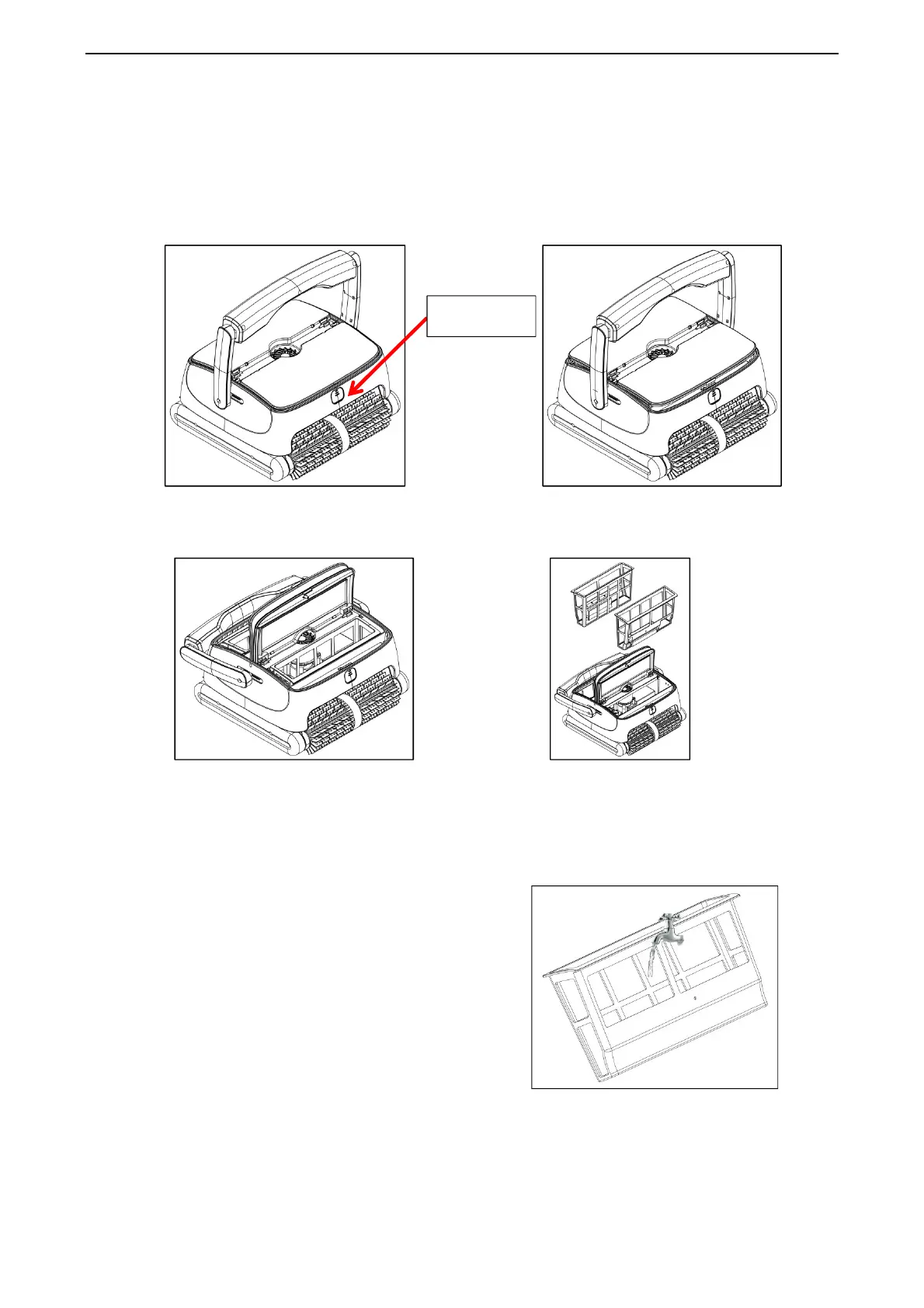 Ställ bottensugen på marken och tryck på knappen (bild 4–1). De båda luckorna öppnas
