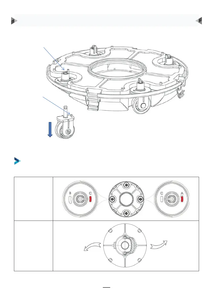 A, B, C are printed on the groove of the wheel limit pile of the chassis. Wheel limit piles will be