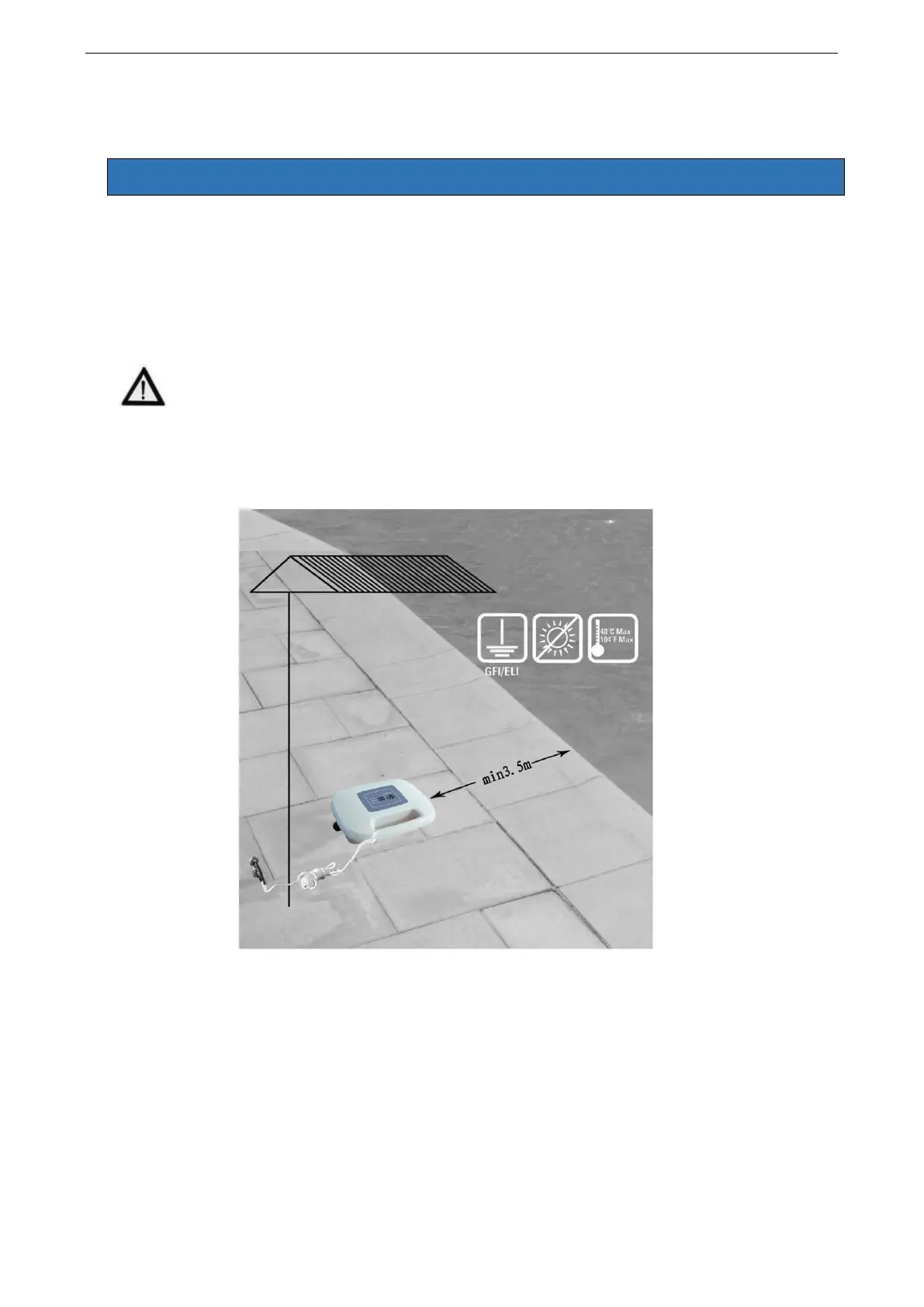 kan bereiken met de drijvende kabel, maar op een minimale afstand van 3,5 m van het zwembad.