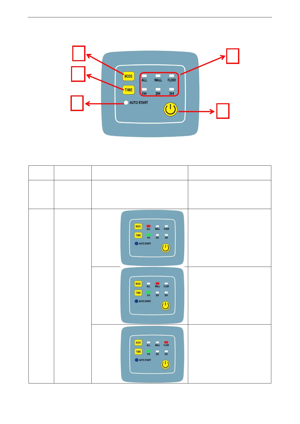 Quadro: istruzioni pulsanti e display