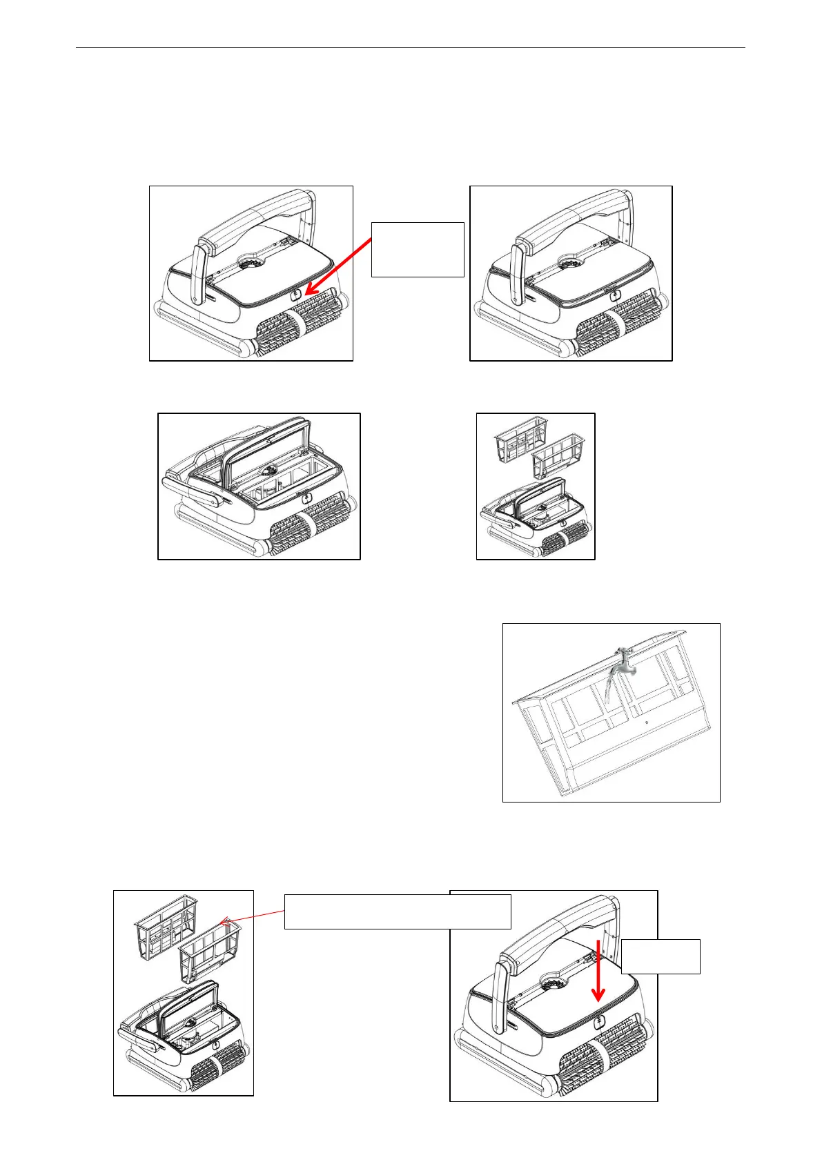 Togliere le cartucce filtranti: premere i pulsanti (fig. 4-1), la copertura si apre automaticamente (fig.