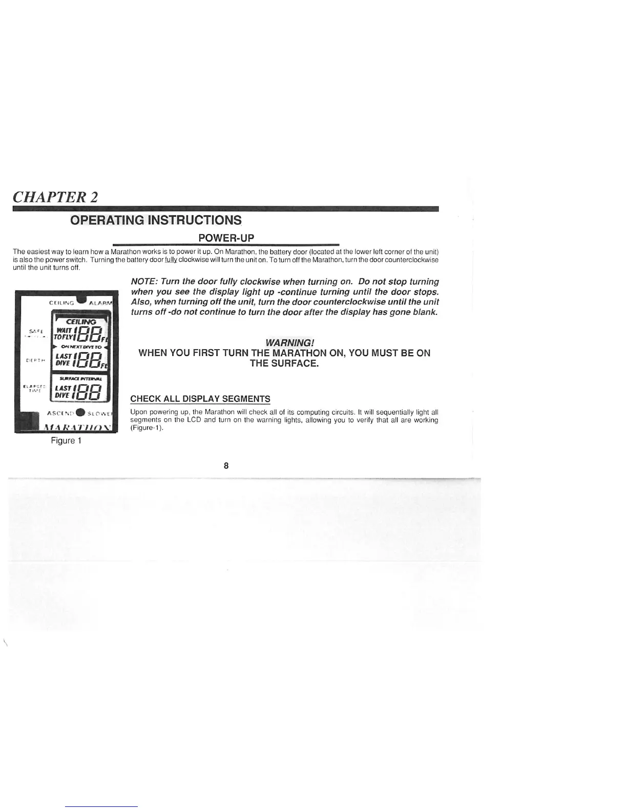 Orca Marathon - Chapter 2: Marathon Operating Instructions; Power-Up Sequence and Display Checks