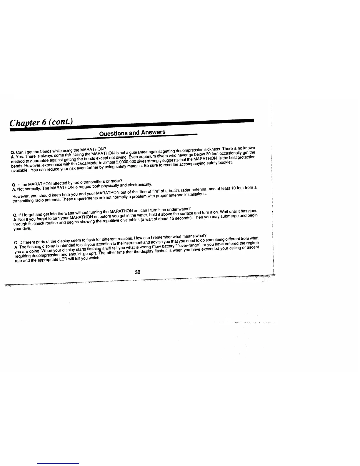 Orca Marathon - Background and Theory of Dive Calculations; Frequently Asked Questions and Answers