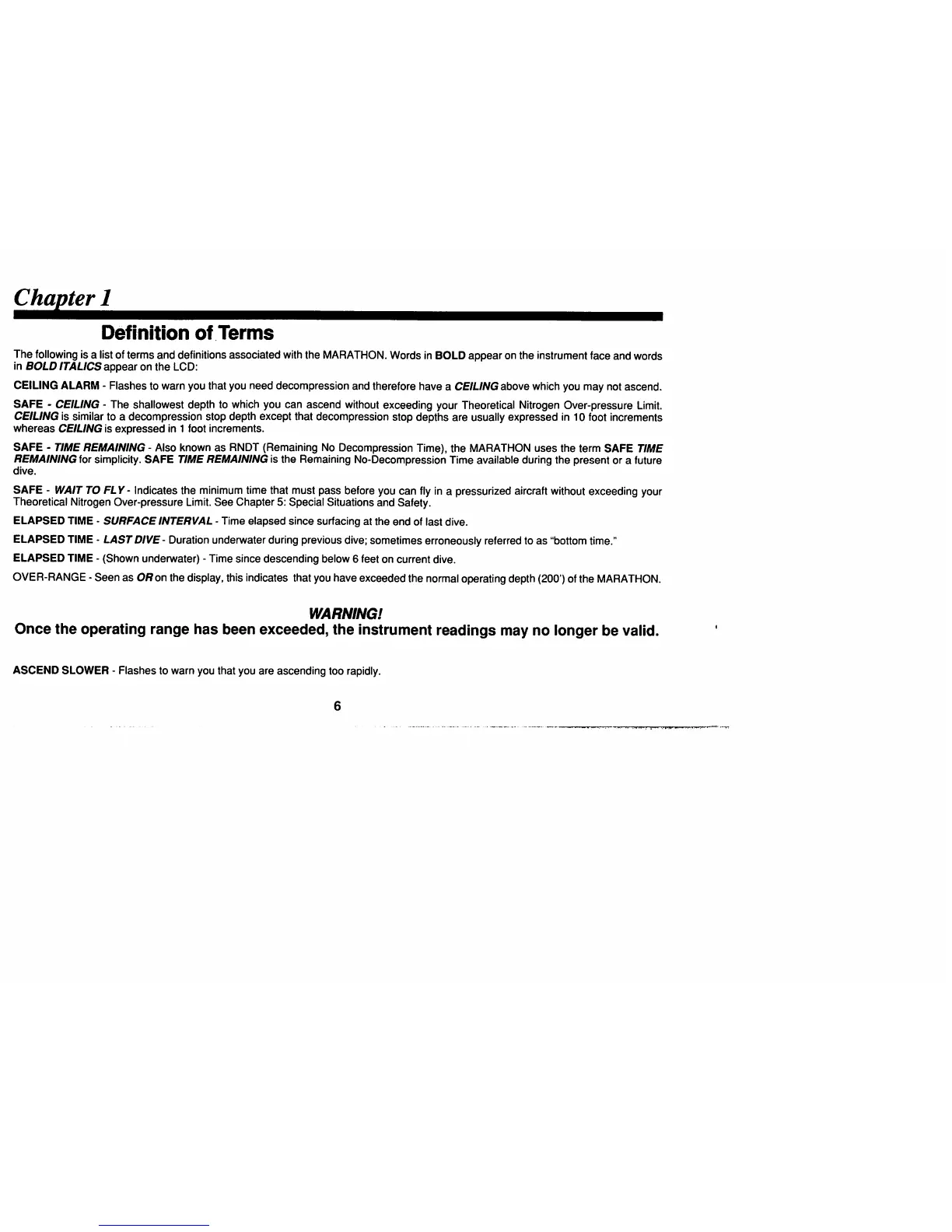 Orca Marathon - Chapter 1: Dive Computer Definitions and Terms; Definition of Terms