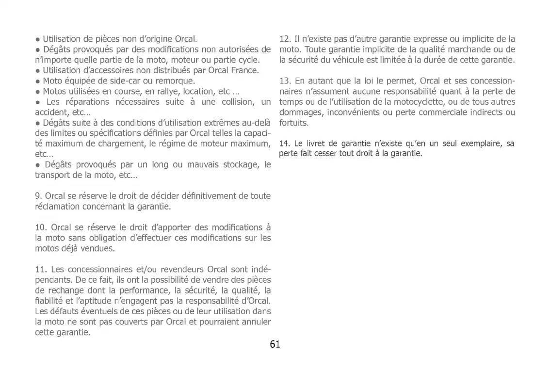 orcal ASTOR - Warranty Terms and Conditions; Non-Covered Items and Modifications; Liability and Guarantee Limitations