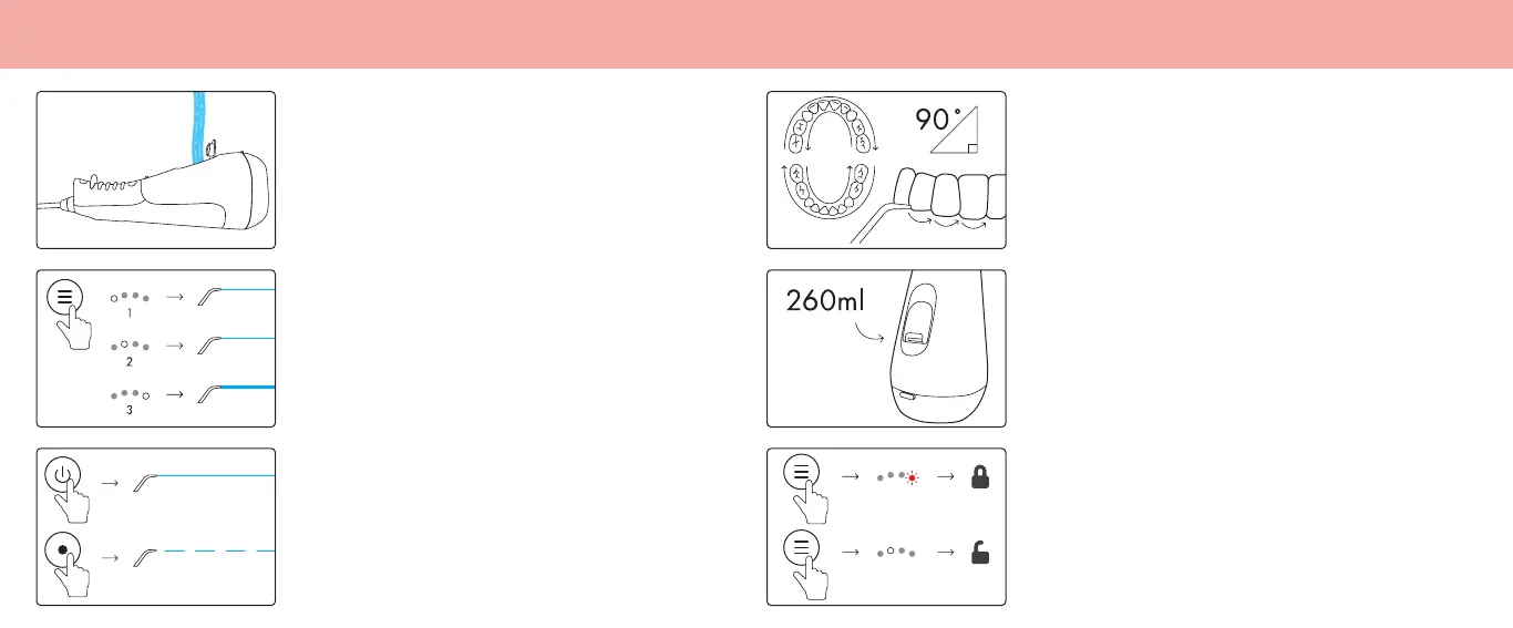 để nước chảy ra ngoài. Nhấn nút nguồn để bắt đầu sử dụng máy tăm