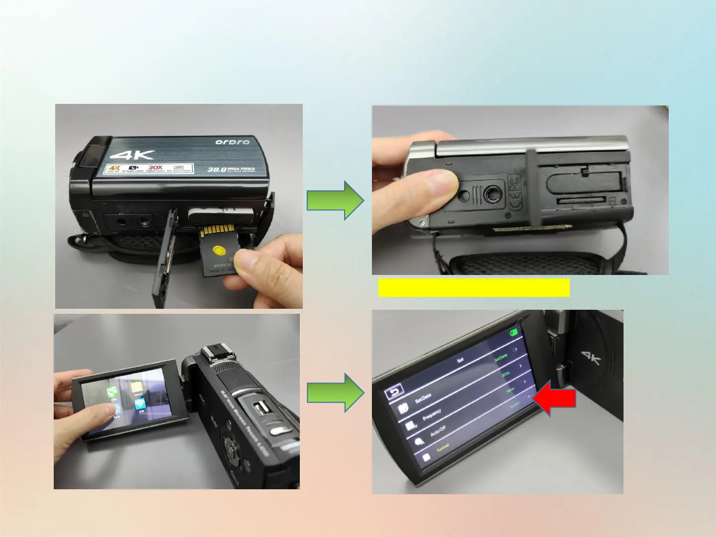 Before use, open the battery cover and insert a battery&SDHC 32GB card.