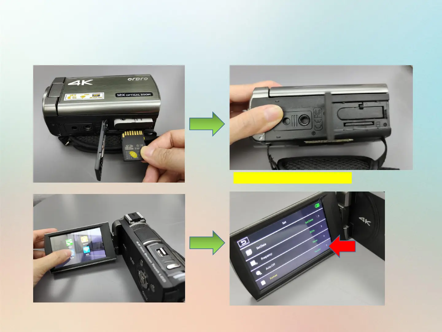 Ordro AX65 - 2 Before You Start; Insert Battery and SDHC 64 GB Card; Format Memory Cards