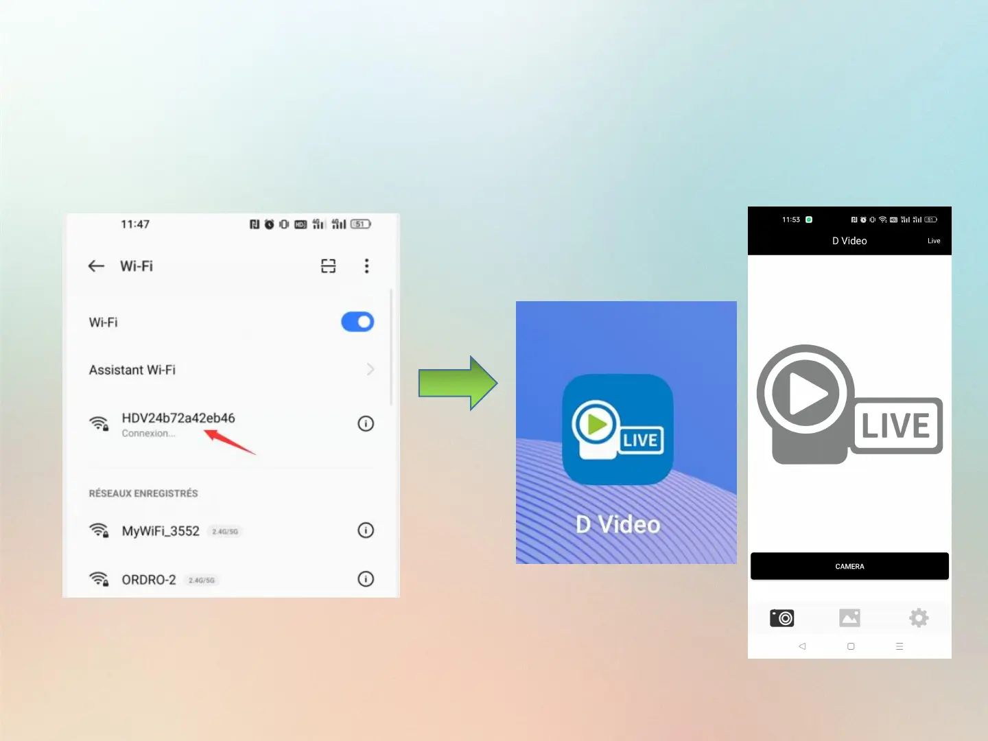 Ordro AX65 - 6 Control via WiFi; Connect Smartphone to Camera WiFi; Launch and Navigate D Video App